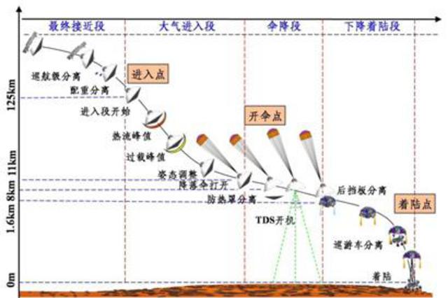 “与探月工程相比,探测器飞往火星面临更多的问题,其中能量和着陆是科学家面临的两大重要问题。”于镭教授告诉记者,飞行器长期工作,距离太阳越远,太阳光越弱,飞到火星的话太阳能电池的效率会很低,而靠其他星球引力提供能量又会耗费更多的时间。探测器抵达火星后,着陆实时自主导航与控制又是一个难题。火星探测器从130多公里的高空进入火星大气,时速高达21000公里(每秒5.9公里),要在短短七分钟的时间内,让探测器的速度降至零,从而实现安全着陆。这也是所有火星探测任务中技术难度最大、失败概率最高的关键时刻,被专家们称为“黑色七分钟”。在近地对接时探测器通常可以实现实时监控操作,但是到火星那么遥远的地方,光传播过去至少需要8分钟,这意味着探测器从火星发回的信息都是8分钟之前的,指令发出后再需要至少8分钟传输给探测器接收,往来就需要至少16分钟,已远远超出探测器着陆所需的 “黑色七分钟”。这么长的时间,探测器可能已经失去控制,撞毁到火星表面上了。因此探测器必须具有自主导航、控制和障碍规避的能力,飞行器才不会撞到火星表面。