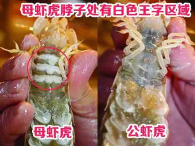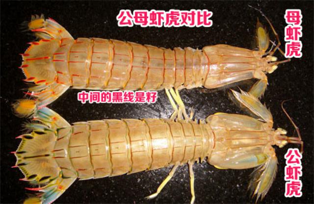 二、带籽母虾虎尾部淡黄,公虾虎背部没有。