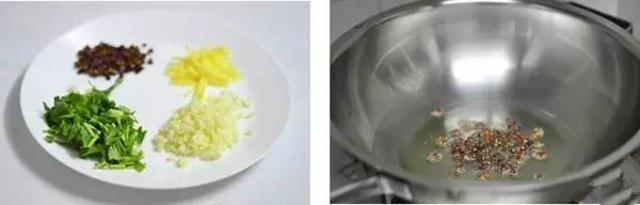 3、锅里放适量油,加热用葱姜爆锅。