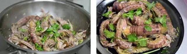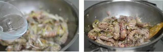 6、翻炒至虾虎变红。