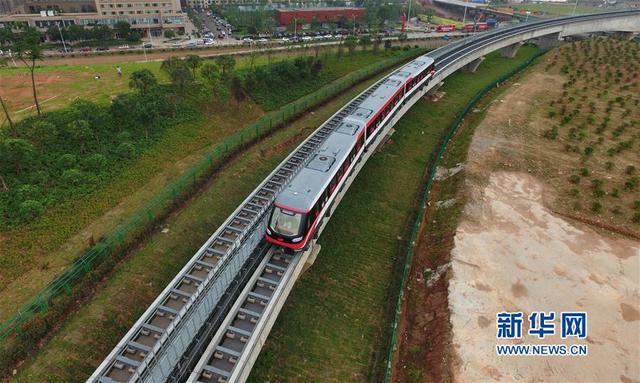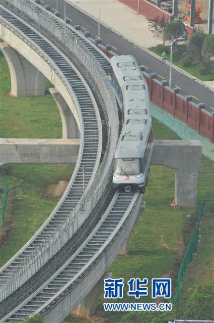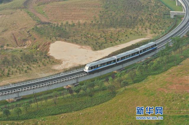 上线试运营的长沙磁浮快线(5月6日摄)。新华社记者李尕摄