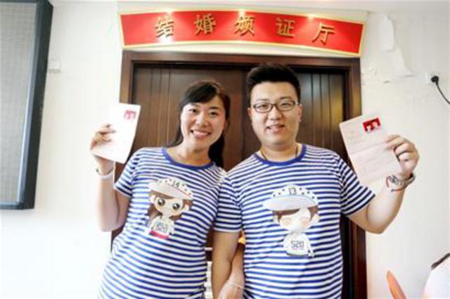 市北区民政局婚姻登记处相关负责人于强介绍,“520”“521”这两个具有特殊寓意的日子都是婚姻登记高峰,市北区民政局婚姻登记处采取了早上班、晚下班、延时工作等措施,以确保每对新人领到结婚证。