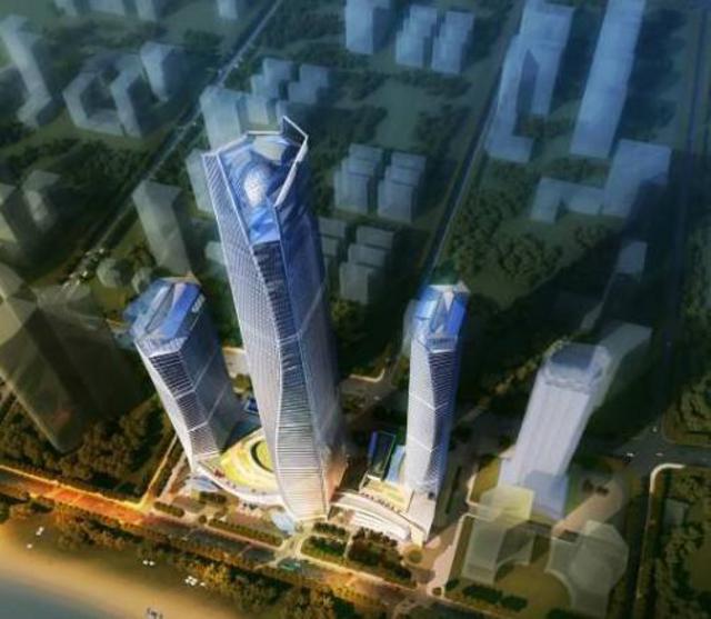 由三栋超高层建筑、商业街区及地下车库构成