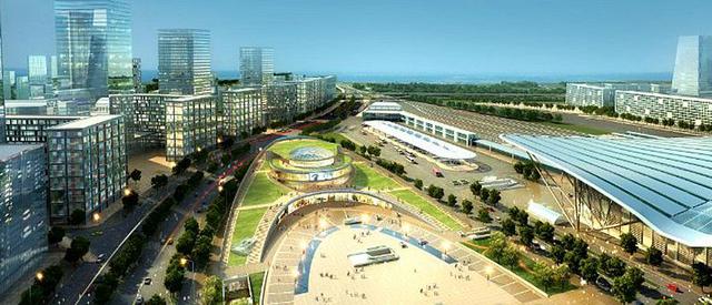在青岛北站的交通商务区核心区