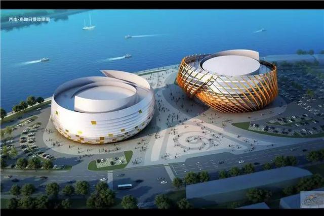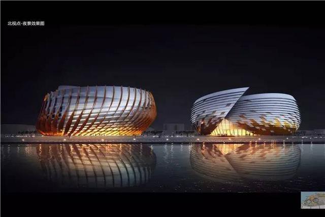两栋建筑一动一静,临海而立