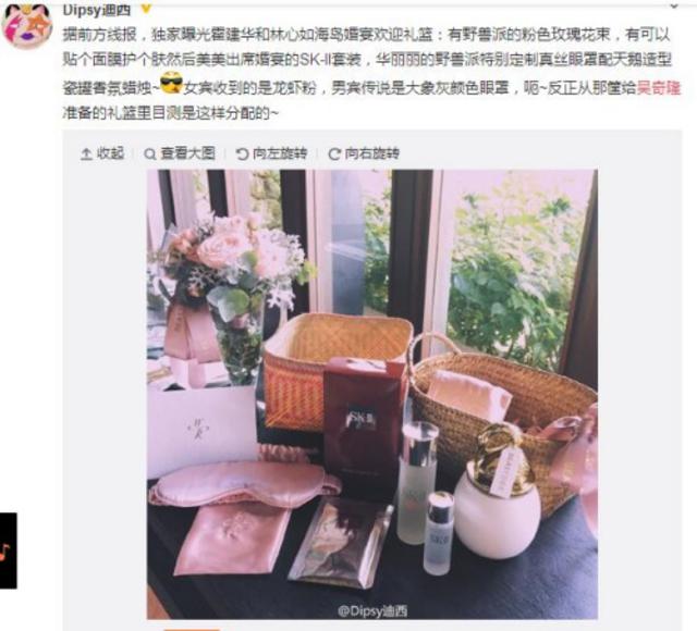 有网友曝光林心如、霍建华大婚精美伴手礼。来源:Dipsy迪西微博截图