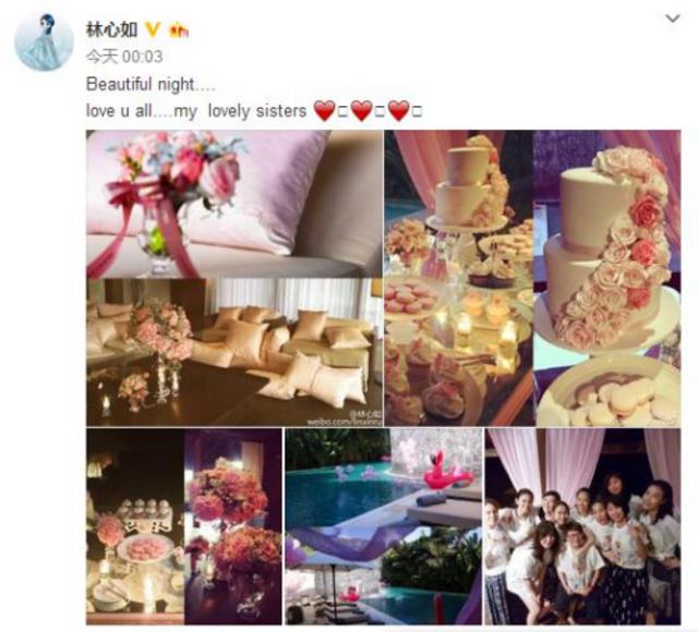 林心如婚前单身派对,布置十分浪漫。来源:林心如微博截图