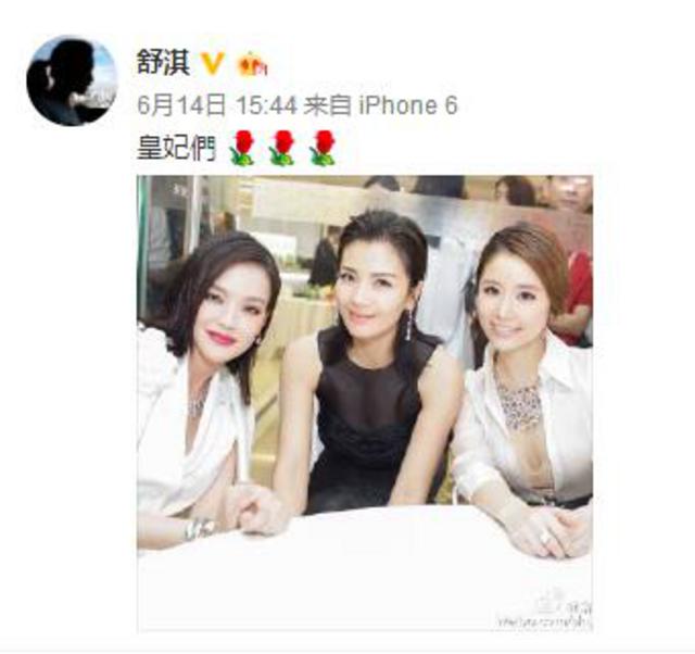 林心如闺蜜团成员舒淇、刘涛都将出席婚礼。来源:舒淇微博截图