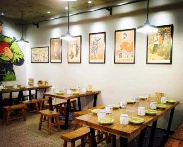 各式革命时期的宣传口号、搪瓷杯、铁饭盒!走进这家店犹如穿越回上了个世纪。菜品起的名字也特别有趣:爱疯6首鸡(烤鸡)、楼前明月(炸锅巴,形似明月)、一抹黑(墨鱼汁炖菜)、饭遭殃(下饭菜,饭要遭殃)地址:错埠岭三路17号 特色:风格怀旧、回头客高口碑人均:59元