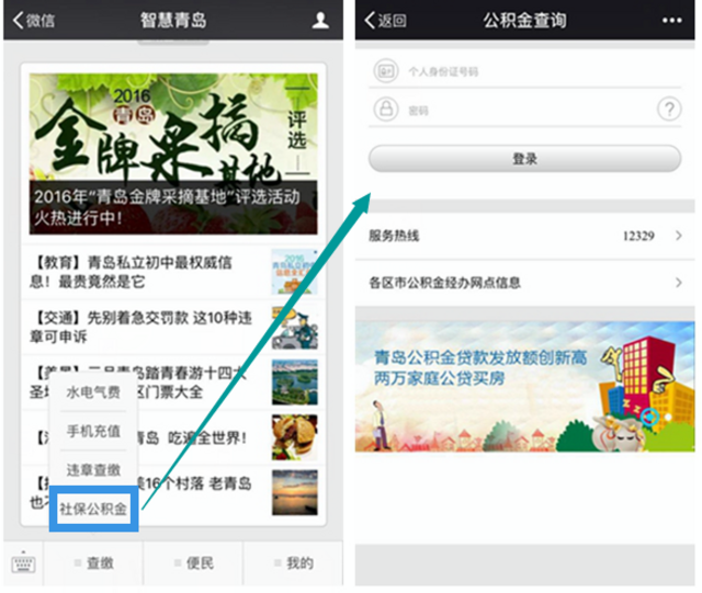 关注智慧青岛微信公众号(zhihuiqd0532)可手机实时查询公积金缴费明细、消费明细。