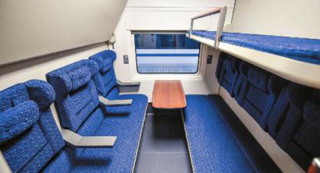 包厢里面,在白天的时候,上铺的床板不是平铺的,有60度的斜角。毕凯解释说,这样能保证在座位状态下,上铺有空间放置被褥、枕头,也不会给坐在下铺位置的乘客压迫感。