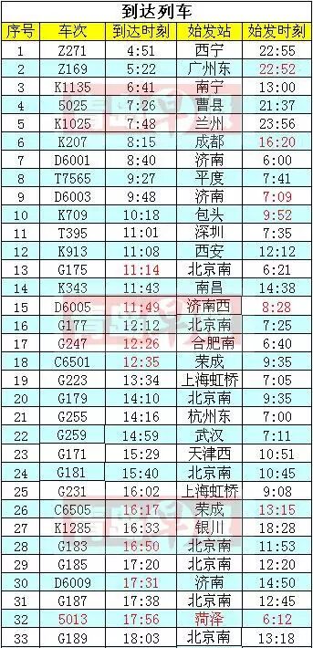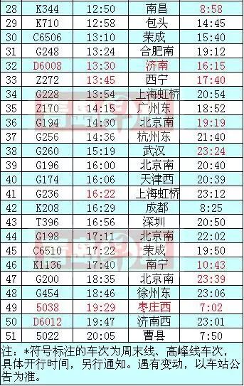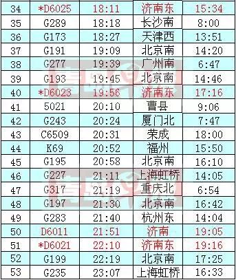 青岛~济南东D6026/D6025次(周末线)。D6026青岛站始发12:21,终到济南东站14:55;D6025济南东始发15:34,终到青岛18:11。