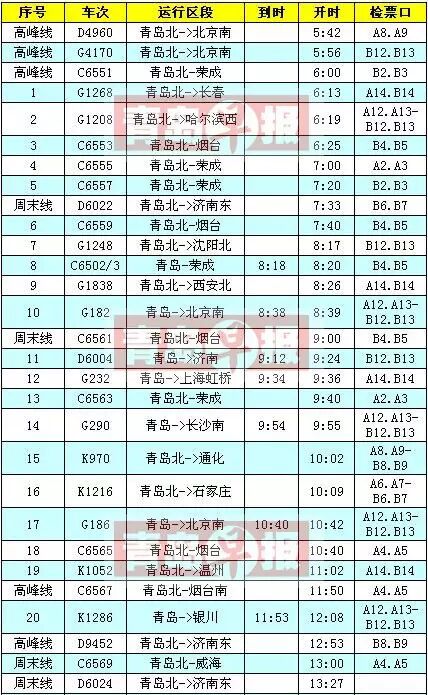 青岛-西宁Z272次,增加青岛北站停点14:04到,14:16开车。