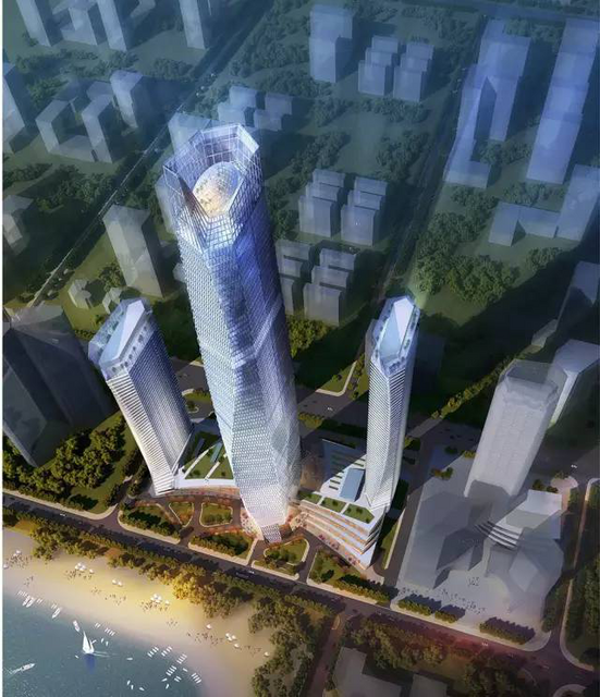 位于香港中路和东海二路交会处,主楼高度达327米