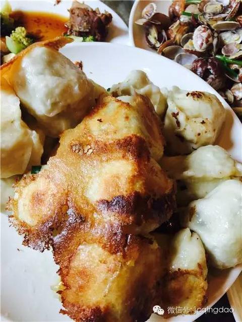 三鲜水饺,绝对是青岛港上值得一吃的。薄皮,手工包制,馅料是韭菜、肉和虾仁,每只咬开之后都是汤汁浓郁,溢满口腔。
