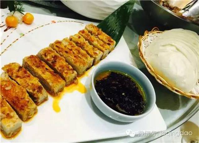 又一道特青岛的家常菜。市场上买回来的小杂鱼,经过厨师的巧妙烹饪,汤鲜肉嫩。尤其是带有饹馇的小饼子蘸上鱼汤吃,满足啊。