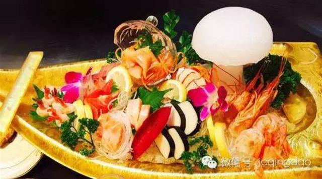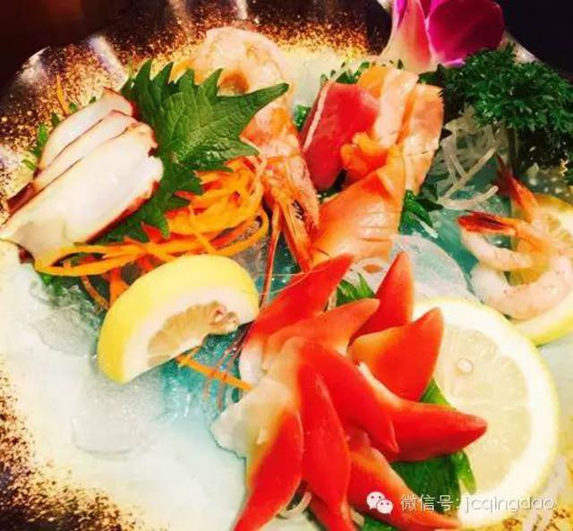 名宴新鲜养眼的刺身拼盘。日本的刺身料理,通常出现在套餐中和桌菜中,同时也可以做为下酒菜、配菜或是单点的特色菜。因为原料是生的,外形很好看,这个摆盘本身就是一道漂亮的风景线。
