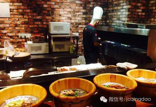 青岛人吃饭哪能没烧烤?碳烤、微波必须有。看,明档烧烤。