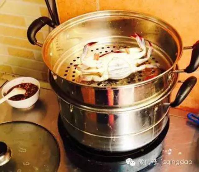 这个蒸锅就放在店铺的门口,客人点好螃蟹、虾之后,直接当着客人的面进锅蒸制,绝对不会到后厨给你换个不新鲜的海鲜。