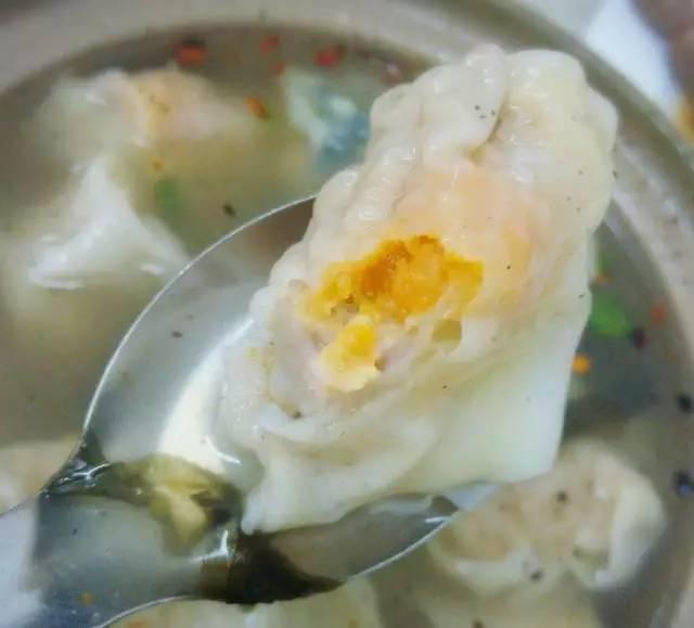 第一次光顾的朋友,建议点个全家福馄饨,有蛤蜊肉、虾仁、黄花鱼、鸭蛋黄、皮蛋,这样大多数的混沌都能吃到,汤头很棒,应该是煮的骨头汤,里面还有碎肉和骨髓,超级棒!