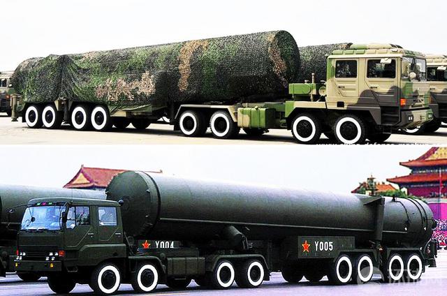 图上为东风-31甲,下为东风-31。但很快进展顺利的东风22便告下马,主要原因有二。其一,“七五”计划期间,“以常规武器为主,适当发展战略核武器”的方针意味着重心的倾斜及核武器研制计划的精简。而更适合机动的固体导弹则被挑中。其二,我国自行研制的大直径固体火箭发动机进展顺利。1985年1月