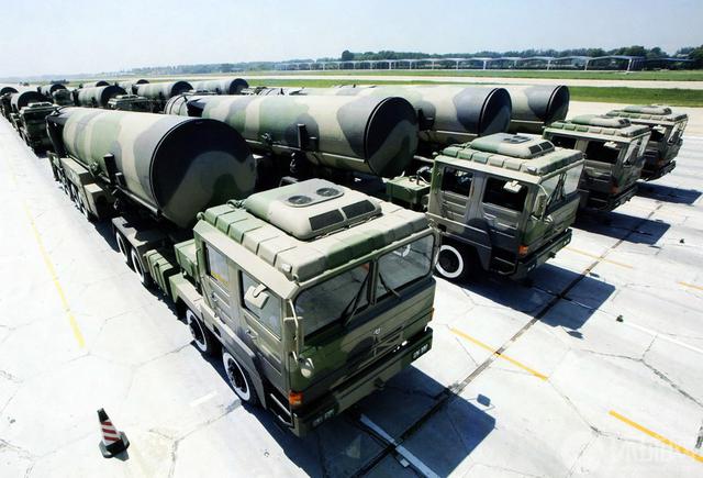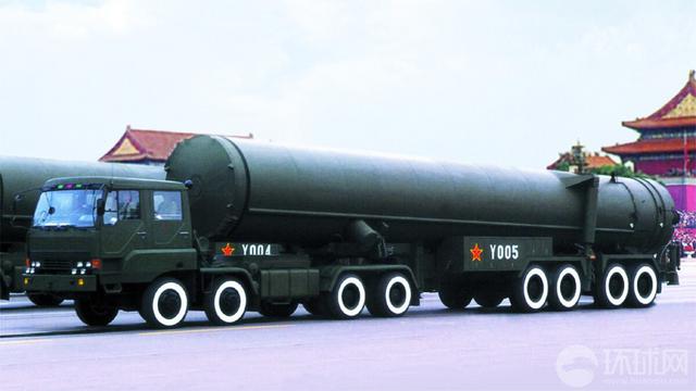 中国东风-31甲陆基洲际弹道导弹。东风31是我国首种远程固体弹道导弹,作为国内第二代战略武器,应用了许多新技术。与其前辈东风5洲际弹道导弹相比,东风31在体积、打击精度、生存性能和突防能力等方面均有明显突破。图为东风31导弹模拟器。