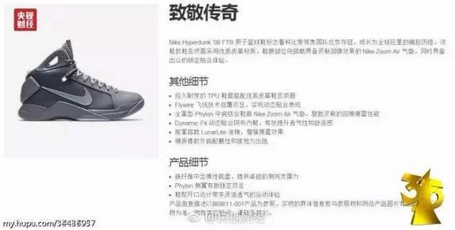 2016年4月,耐克篮球官方微博发布了一条消息,NBA球星科比布莱恩特,2008年北京奥运会夺冠时所穿的一双耐克篮球鞋复刻版,将限量发售。