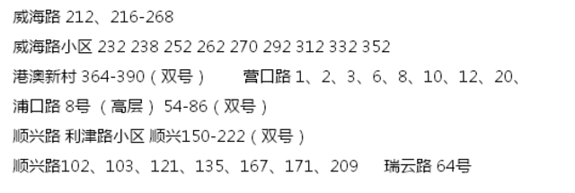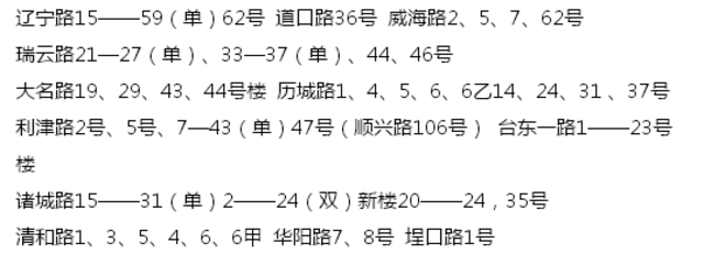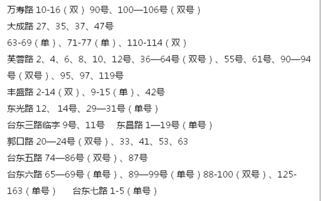 潍县路 1—33号 2—22号 济宁路 1—29号 2—30号