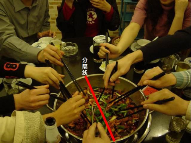 9、夹菜不“过河”,夹菜不过盘中线,夹靠近自己这边的菜,尽量不要翻乱了别人那一边的,这是礼貌。