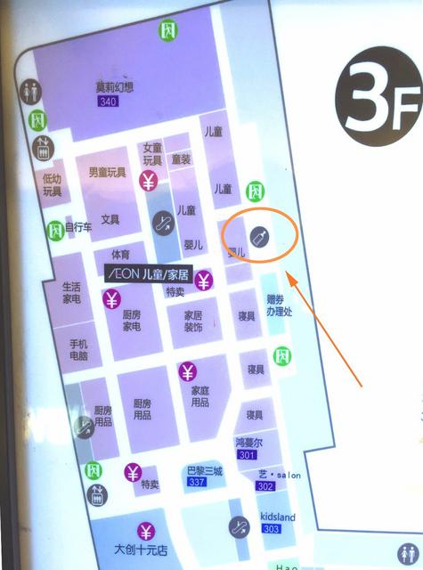 位于3楼永旺儿童家具超市内,标识很醒目。外间是洗漱台休息室,有成人休息卡座,也有宝宝用的护理台。