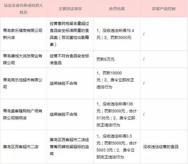 山东省食品药品监督管理局日前公布了全省17地市4月食品药品行政处罚信息。其中,青岛144家食品类企业或个人上“黑榜”,包括了以鱼水饺起家的船歌餐饮,还有多家知名超市因经营不合格食品被罚。部分上榜企业如下: