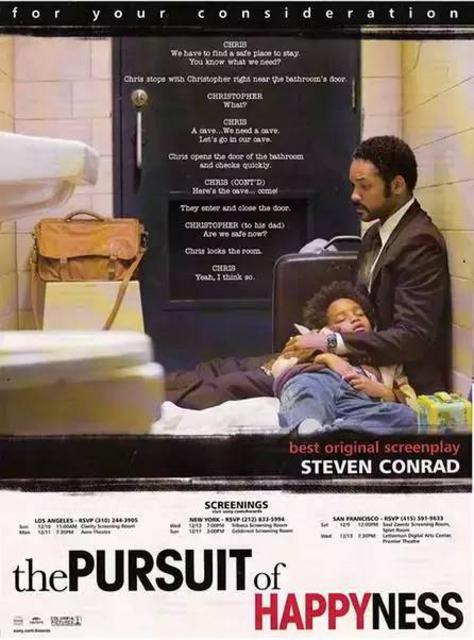 克里斯加纳用尽全部积蓄买下了高科技治疗仪,到处向医院推销,可是价格高昂,接受的人不多。就算他多努力都无法提供一个良好的生活环境给妻儿,妻子最终选择离家。从此他带着儿子克里斯托夫相依为命。他仍努力奋斗,看尽白眼,与儿子躲在地铁站里的公共厕所里,住在教堂的收容所里…… 他坚信,幸福明天就会来临。