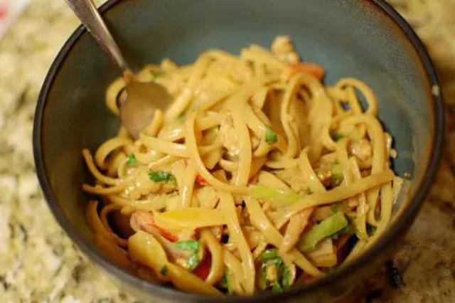 10、和面条,蛋丝拌在一起,吃的时候撒花生碎即可。