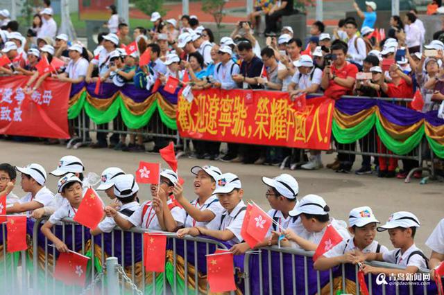 南部战区副司令员常丁求,中联办主任张晓明,外交公署特派员谢锋,驻香港部队司令员谭本宏、政委岳世鑫,香港特别行政区政府部分官员,港区全国人大代表、全国政协常委,香港部分社会知名人士,以及社团和学生代表等共约1600人出席欢迎仪式。