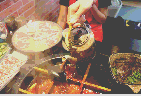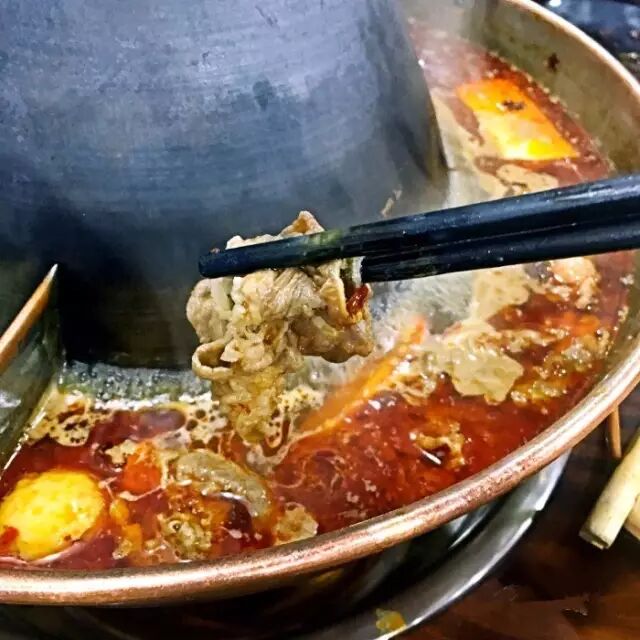 为了保证最纯粹的老火锅滋味,锅底的用料绝对够足,锅底都是选用老荫茶熬煮而成,加汤也是直接拎起桌子上的茶壶就加。