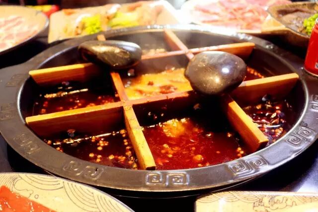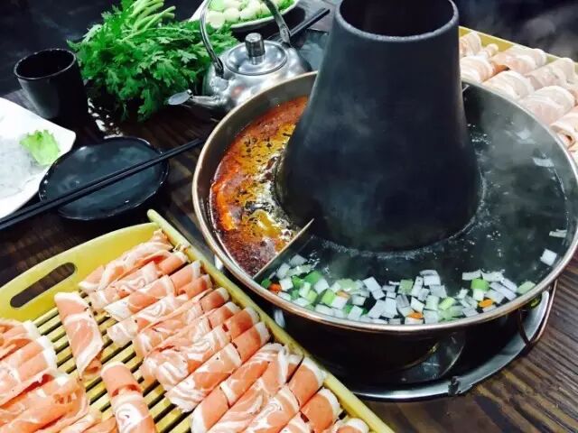 细心的你一定发现了压在九宫格上的鹅卵石了吧,这可是专门在涮品熟后沥油用的哦。还没开锅,香气就充满了整个房间。