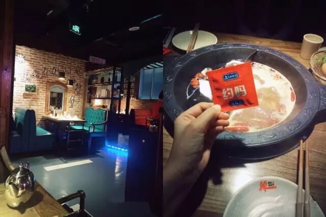 这是包贝尔投资的火锅店,主打穿越题材,门口放了兵马俑,内顶是西湖油纸伞,墙上挂着京剧脸谱,服务员都是古代的扮相,一进门就吆喝着有客到~桌子凳子等装修都是那种古代的感觉,别有一番风情。