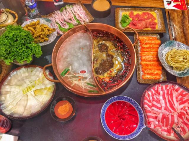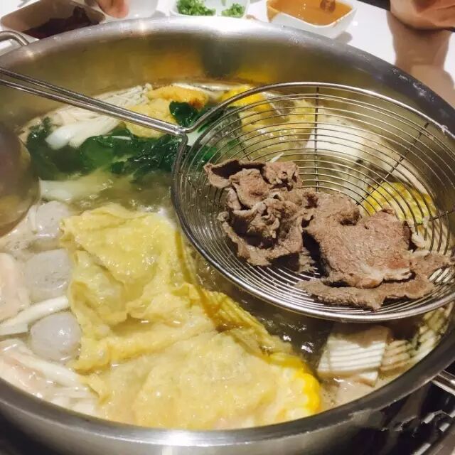 在这里锅底有青椒(鲜麻开胃)、红油、清汤三种,青椒锅底的那种麻感特别带劲。而且蘸料也是自家研磨调配,味蕾完全被征服!点菜的话犇哥墙裂推荐挂面鸭肠、招牌生吃蟹柳、招牌鱼羊鲜、虾滑、黄花鱼滑。当然,其他食材也是很新鲜滴。
