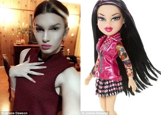 虽然茱莲妮发现自己喜欢的是女人,但她并不想变回男人,接下来她还要继续整容,想让自己变得更像一贝兹娃娃(上图右)。
