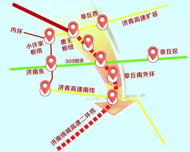 济南至青岛高速公路济南段:起点位于历城区济青高速公路零点立交处,终点位于章丘区济青高速公路济南与滨州邹平交界处,全长51.18公里,其中历城段23.8公里,章丘段25.58公里,高新段1.8公里,估算投资58.1亿元,沿途穿越12个街道、88个行政村,济南段征地面积3340亩。