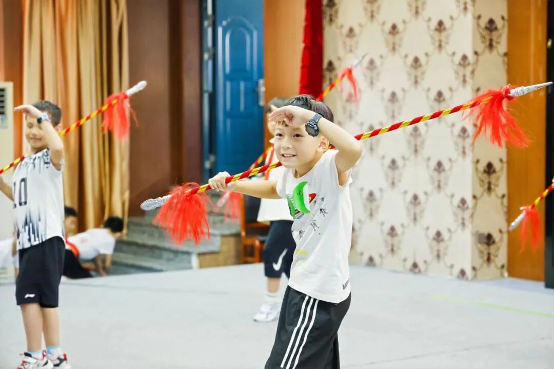 当音乐响起,小小萌娃一秒入戏,仿佛穿越到神话故事中,表演起来也更加传神。“台上一分钟,台下十年功。”孩子们在一招一式中体会到演员们的辛苦。