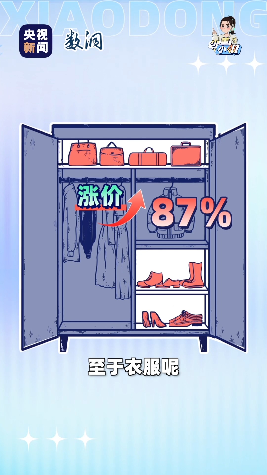 耶鲁大学预算实验室更为美国人列出了一版详细的“涨价清单”,把这些数据叠加到图上,发现首先受到冲击的竟然是他们的衣柜:短期内,皮鞋、箱包等皮革制品可能会上涨近九成(87%),至于衣服,不管是针织衫、家居服,还是羽绒服,短期内的价格涨幅都可能会达到65%左右。电视、微波炉、智能家居设备、床品、地毯这些现代生活必需品,价格差不多都要涨一半!要是美国人真准备按照这些清单购物,估计得考虑先卖掉家里的衣柜了。