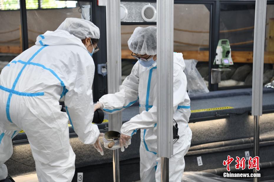 出土文物转移出发掘现场。 张浪 摄
