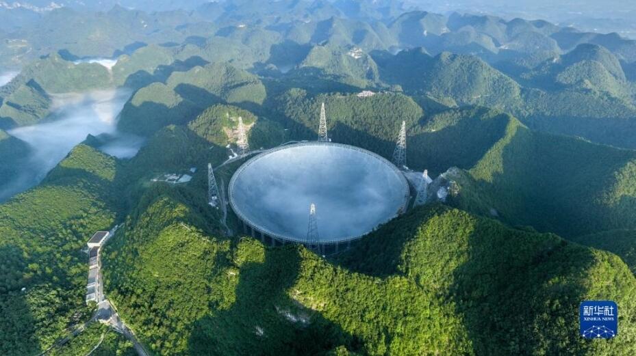7月25日拍摄的“中国天眼”(维护保养期间拍摄,无人机照片)。截至目前,被誉为“中国天眼”的500米口径球面射电望远镜已发现660余颗新脉冲星。“中国天眼”已进入成果爆发期。新华社记者 欧东衢 摄