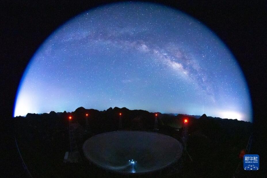 7月24日,星空下的“中国天眼”(维护保养期间拍摄,长时间曝光照片)。截至目前,被誉为“中国天眼”的500米口径球面射电望远镜已发现660余颗新脉冲星。“中国天眼”已进入成果爆发期。新华社记者 欧东衢 摄