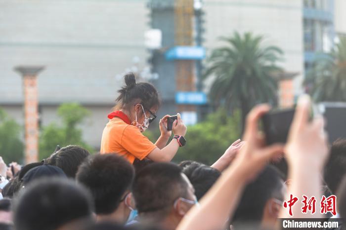 图为不少市民在八一广场上观看升旗仪式。 刘力鑫 摄
