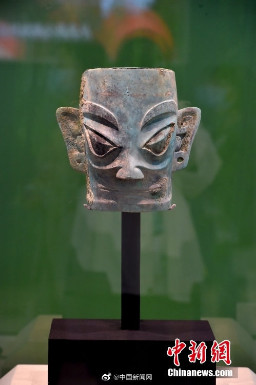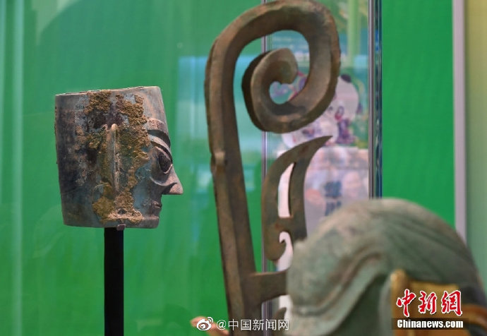 在北京展览馆举行的奋进新时代主题成就展上,一尊来自三星堆最新出土的青铜人头像首次面向观众展出。据介绍,这尊青铜人头像于2022年7月在三星堆8号坑出土,是三星堆文化的代表性铜器,展现了古蜀文明精湛的铸造工艺和高超的造型艺术。它将在北京展出3个月,让观众得以亲眼看见三星堆考古研究的最新成果。