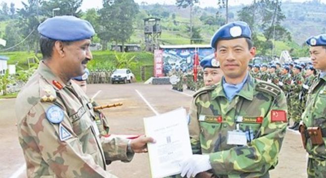 联合国驻刚果(金)维和官员授予胡正强和平勋章证书