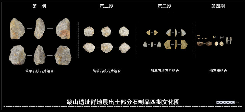 跋山遗址群地层出土部分石制品四期文化图。