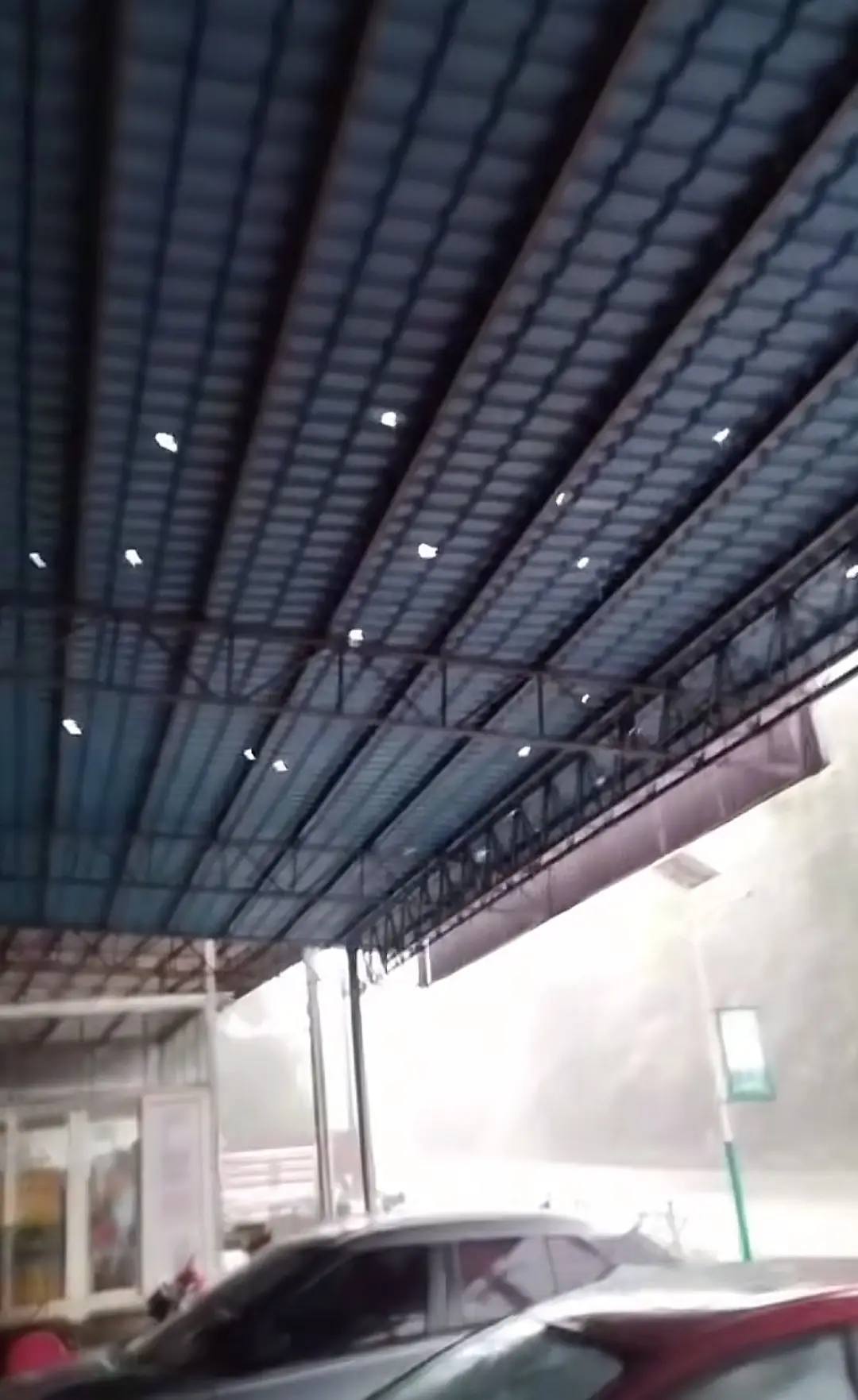 有村民拍摄的视频显示,鸡蛋大的冰雹将屋顶铁皮棚打穿。